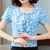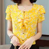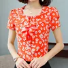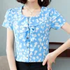 Chemisier imprimé Floral en mousseline de soie pour femmes, hauts à la mode, volants floraux, manches courtes, chemises à boutons, été, 2021