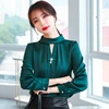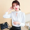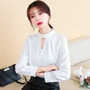 Chemise en soie coréenne pour femmes, Blouse en Satin pour femmes, chemise en soie perlée, manches longues, chemises blanches pour dames, chemisiers ajourés XXL