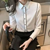 Chemise blanche en Satin à manches longues pour femme, chemisier en soie, à la mode coréenne, pour le bureau, XXL