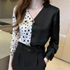 Chemisiers en mousseline de soie pour femmes, boutons, col en v, manches longues, imprimé asymétrique, Vintage Tops, vêtements de base, automne