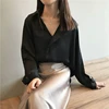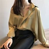 Chemisier Vintage en soie à col en V pour femmes, élégant et Sexy, à la mode, été, automne, 2021