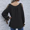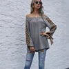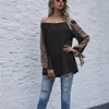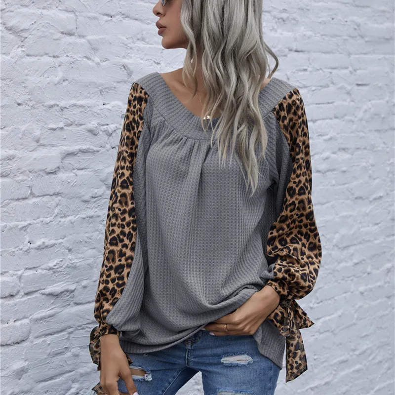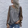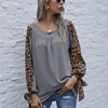 Chemisier tricoté à lacets, nouvelle collection printemps automne, haut à la mode, Sexy, col en v, manches longues, Patchwork léopard, pour femmes, 2021