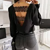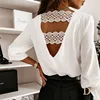 Chemisier blanc en dentelle pour femmes, à la mode, Sexy, dos nu, élégant, col en V, manches longues évasées, chemises de bureau pour dames