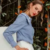 QWEEK – chemise à carreaux Vintage pour femmes, col boutonné, manches longues, bleu, élégante, coton