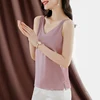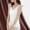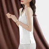 Chemisier en Satin sans manches pour femmes, Top coréen, en soie, col en V, blanc, grande taille, rose