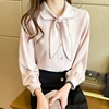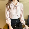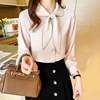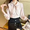 Chemisier coréen en mousseline de soie pour femme, haut à manches longues, avec ruban, à la mode, avec nœud