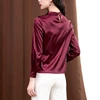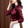Chemise coréenne en Satin pour femmes, Blouse à perles, manches longues, grande taille, Ruflles