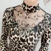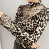 Chemise en dentelle à manches longues pour femme, chemisier simple, Sexy, imprimé léopard, broderie de feuilles, décontracté, printemps automne