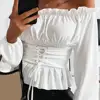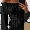 Chemise à manches longues pour femme, manteau décontracté, couleur unie, ourlet à volants, épaules dénudées