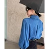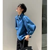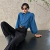 Chemisier en jean pour femmes, Vintage, Vintage, bleu, à la mode, col, manches bouffantes, court, Chic, Y2k, automne 2021