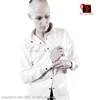 Chemise en Latex blanc Sexy, manteau en caoutchouc, veste, chemisier Gummi, Catsuit, manches longues, haut uniforme, bouton, Tee Shirt Snap, grande taille Xxxl Sy 010