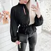 2020 Femmes Élégant De Base Noir décontracté Chemise Femelle Élégant OL Travail Top Rayures Keyhole Avant Maille Blouse