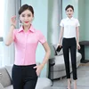 Femmes hauts et chemisiers coton femmes chemises à manches courtes rose/blanc femmes Blouses mode coréenne vêtements grande taille XXXL/4XL chemisier femme haut femme roupas feminina