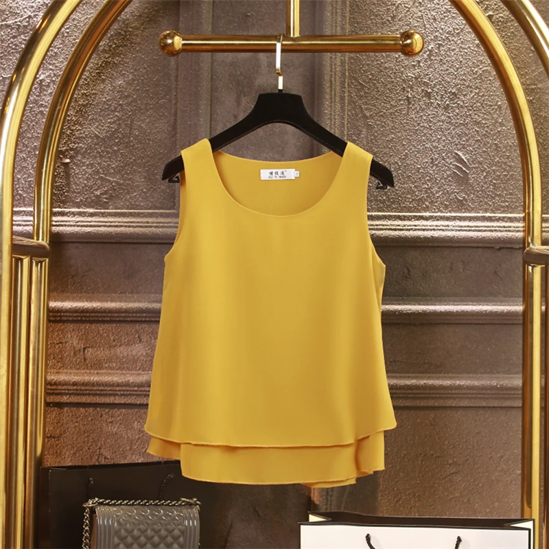 Chemisier en mousseline de soie pour femme, haut sans manches, col rond, disponible en 13 couleurs, mode été 2021