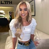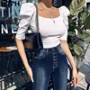 Chemisier sexy à col carré pour femme, haut à manches bouffantes, couleur unie, nombril court, à la mode, offre spéciale, printemps, 2020