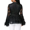 Chemisier transparent en maille pour femmes, grande taille, à la mode, transparent, manches longues évasées, Slim, Top en maille transparente, chemise noire