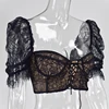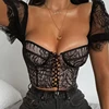 NewAsia — Haut court sexy pour femme, corset en dentelle extensible, transparent, fluide, encolure carrée, col carré, armatures
