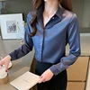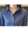 Chemisiers en soie pour femmes, mode coréenne de printemps, hauts et chemisiers en Satin solide pour femmes, chemises blanches de bureau à manches longues pour femmes