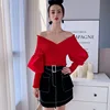 Dabuwawa – chemise unie pour femme, col asymétrique, épaules dénudées, coupe cintrée, Sexy, pull de fête, manches lanternes, DT1AST030