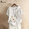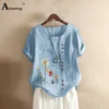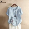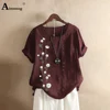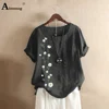 Chemisier en lin à col rond pour femmes, manches courtes, grande taille 5xl, été 2020