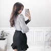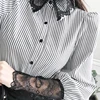 Chemisier rayé à manches longues pour femmes, vêtements élégants en dentelle, Style coréen, mode bouffante, automne 2021