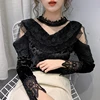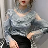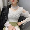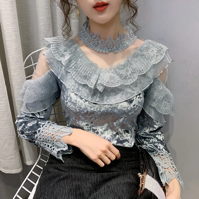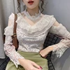 Chemisier en dentelle à manches longues et demi col pour femme, vêtement en velours coréen à volants, collection automne hiver 2020, 3026E