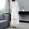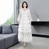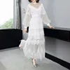 Longue robe blanche en Tulle et dentelle pour femmes, tenue de mariage de haute qualité, Sexy, maille, Patchwork, manches longues, Maxi, XL, printemps été, 2021
