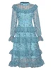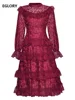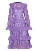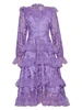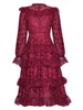 Robe en dentelle de haute qualité pour femmes, Style printemps été, col montant, broderie Lurex, volants en cascade, Sexy, rouge, bleu, violet, 2021