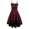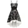 Robe noire gothique asymétrique pour femmes, Corset à bretelles Spaghetti, robe de bal de Cocktail, taille haute