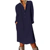 Robe en coton et lin pour femmes, 2021, printemps automne, ample, décontracté, manches longues, bouton Nature, col rabattu, robes