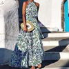 Robe longue d'été pour femmes, décontractée, Vintage, imprimée, mode dames, Sexy, ample, plage, élégante, col licou, sans manches, robe de soirée