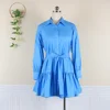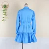 Mini robe chemise plissée à ceinture pour femme, vêtement de bureau, à volants, décontracté, haut à col rabattu, tunique, collection automne, 2021