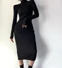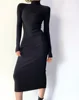Nouvelle robe de rue de couleur unie pour femmes, robe moulante à col haut aux hanches, robe sexy à manches longues et élastique mince pour femmes, printemps et automne