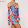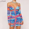 Macheda – robe à bretelles imprimée pour femmes, Sexy, Slim, sans manches, col en V, à lacets, MIni, moulante, soirée de rue, automne