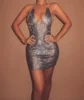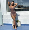 SRUBY – robe Sexy à paillettes pour femmes, dos nu, en résille, strass, pour la plage, boîte de nuit, soirée, moulante, été