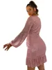 SRUBY Temperament – robe de soirée à paillettes pour femmes, col en V profond croisé, manches à bulles, perles, français, Sexy, manches longues, noël