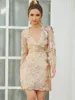 SRUBY – robe de soirée à manches longues, transparente, en maille, à paillettes florales