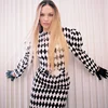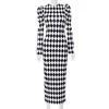 Robe Midi moulante à carreaux de diamant, manches longues bouffantes, noir, blanc, losange, épaules nues, nouvelle collection automne hiver 2021