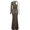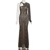 Robe longue pour femmes, Hipster, léopard, Maxi, asymétrique, épaule dénudée, manches longues, col en sergé, vacances, automne