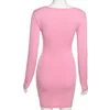 Mini robe tricotée côtelée pour femmes, tenue de soirée moulante à manches longues, col en v, blanc, rose, automne, 2021