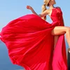 Robe de plage longue sans manches pour femmes, tenue élégante, tempérament Simple, fente latérale, couleur unie, Maxi, Slim