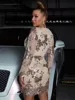 SRUBY – robe à manches longues, en maille, avec paillettes et fleurs