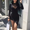 Robe crayon courte et Sexy pour femmes, moulante, col rond, manches longues, licou, tenue de soirée irrégulière