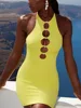 SRUBY – Mini robe moulante sans manches à col rond pour femme, tenue de soirée Sexy, ajourée, à la mode, été