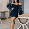 Robe de soirée crayon noire à manches longues, Robe portefeuille, hanche, Mini, épaules nues, automne hiver