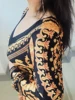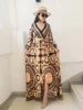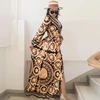 Robe longue à manches longues pour femmes, tenue décontractée, décolleté en v profond, avec ceinture, imprimée, de haute qualité
