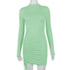 Mini robe froncée moulante à lacets pour femme, vêtement Sexy, manches longues, col rond, drapée, moulante, tenue de soirée, automne 2021