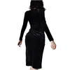 Robe Midi fendue à col carré pour femme, tenue de soirée élégante, moulante, Sexy, à manches longues, mode automne