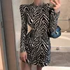 Robe plissée à carreaux zèbre pour femmes, tenue élégante à manches longues, Style coréen, nouvelle collection printemps été 2021