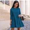 Mini robe noire à col rond pour femmes, tenue élégante à manches longues, ample, à volants, bleue, mode automne hiver 2021